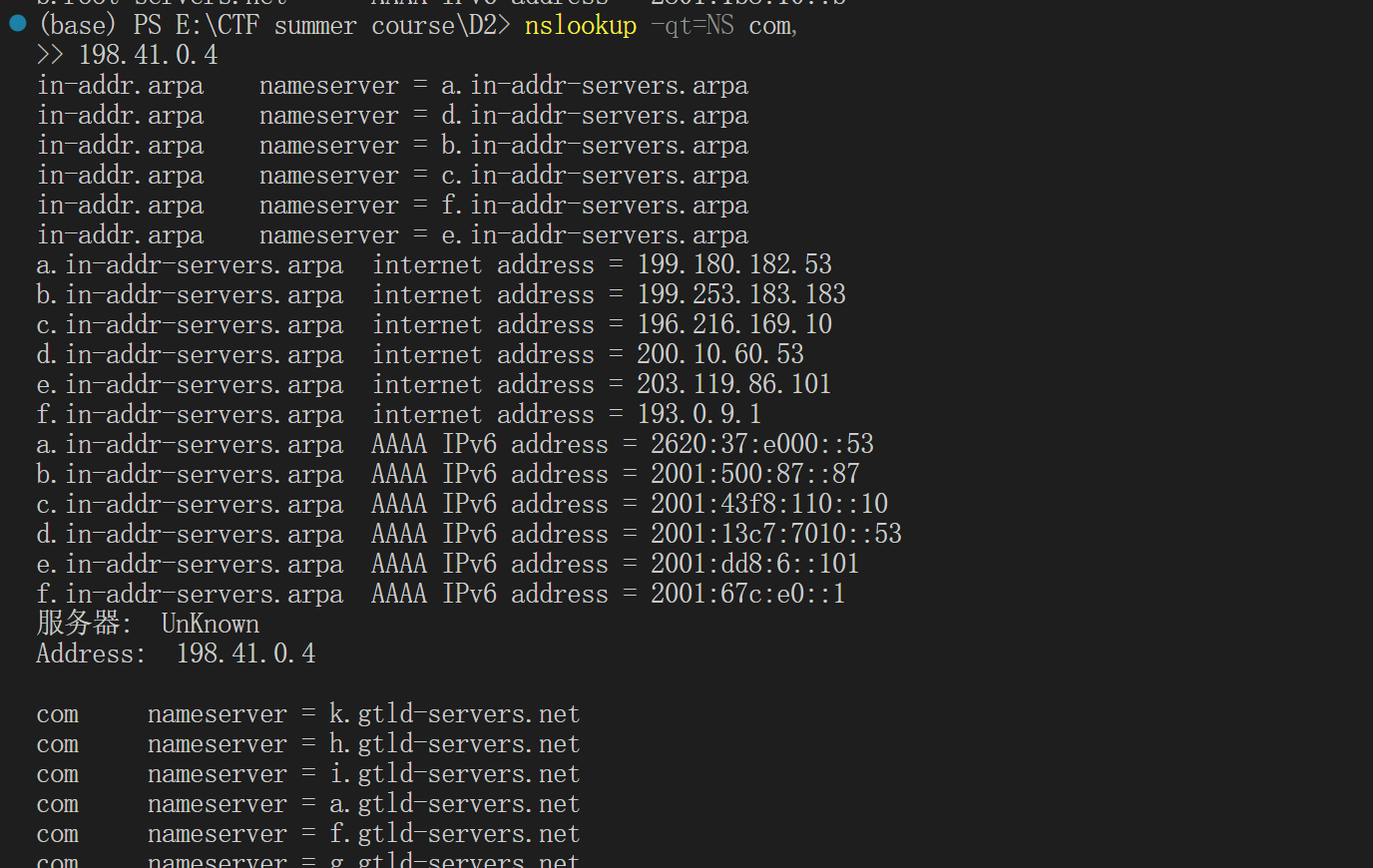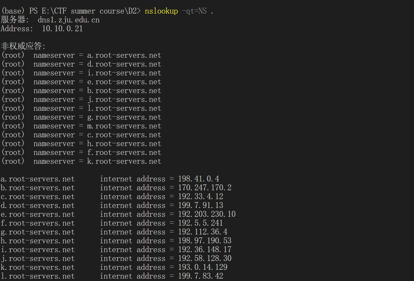 询问根域名(.)的 DNS 服务器 (类型为NS)