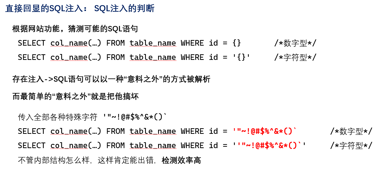 SQL 注入类型的判断:数字型/字符型