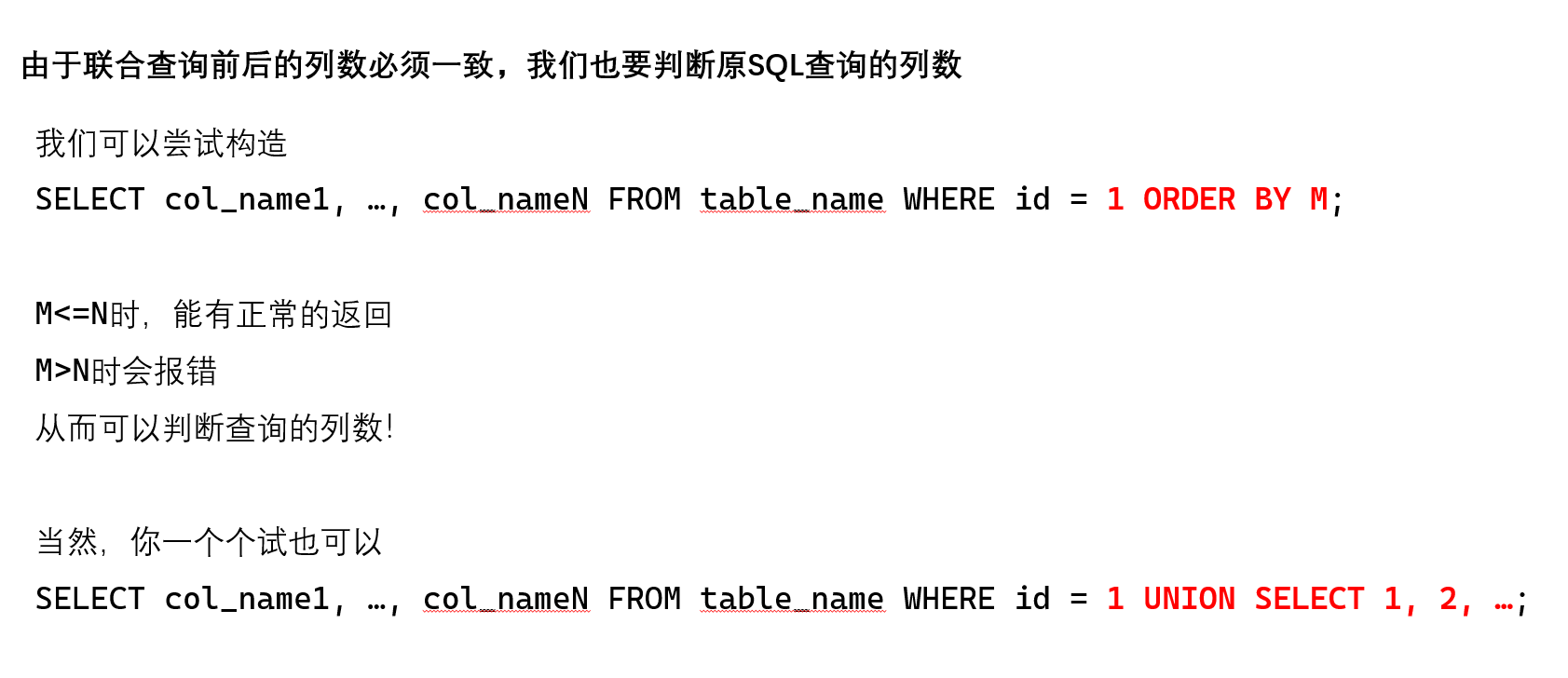 前提是有报错信息,当 M 大于实际的列数的时候无法`ORDER BY`于是会报错