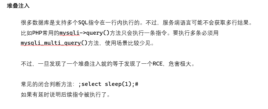 很多数据库支支持多个 SQL 指令在一行中执行。但是服务端的语言不会支持获取多行的结果