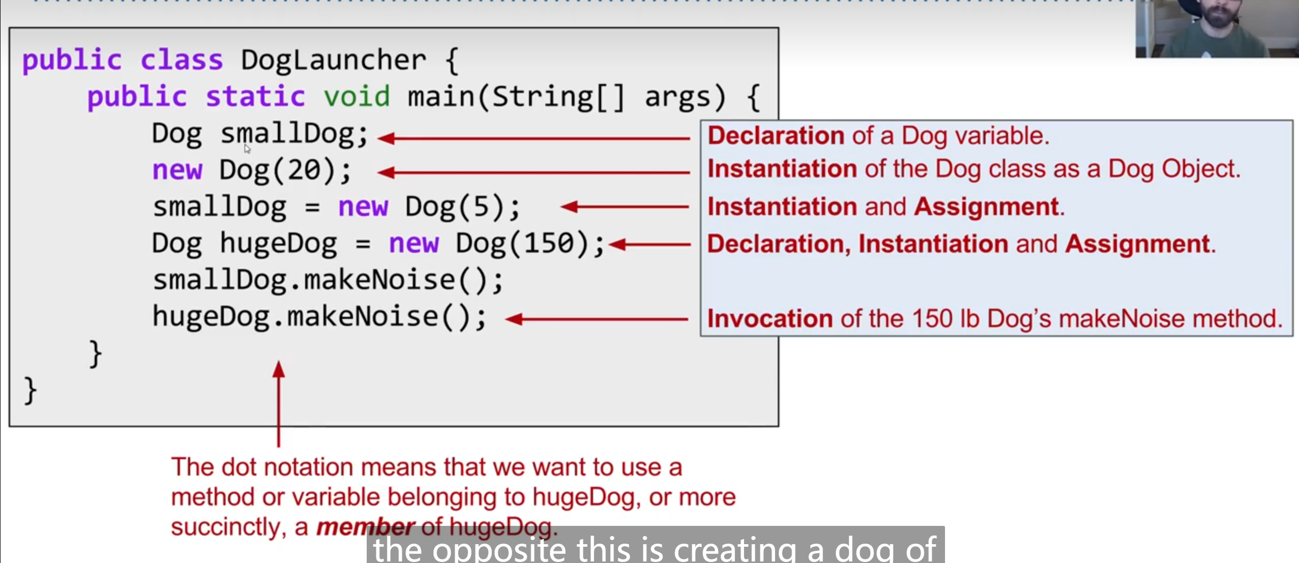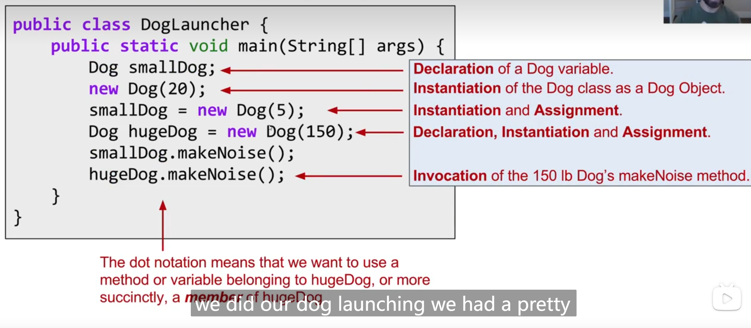 constructor determine how to instantiate the class Dog in launcher , looks like a method(but its not)