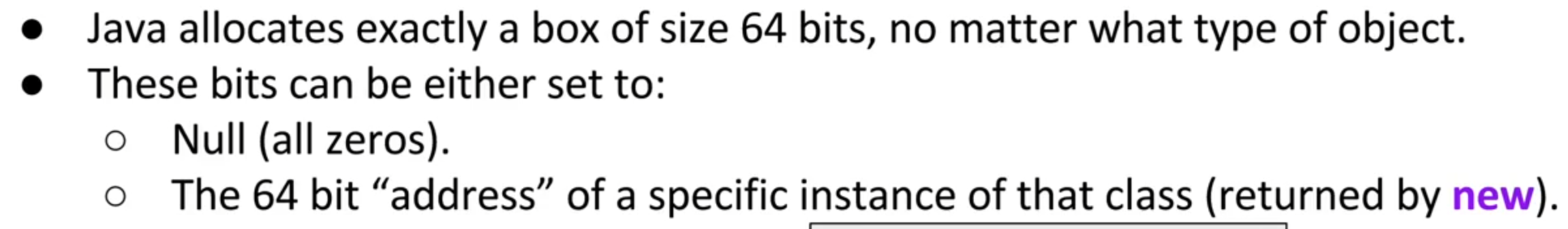 1  | int[] a //Declaration (create a new box, no object is insrantiated)  |